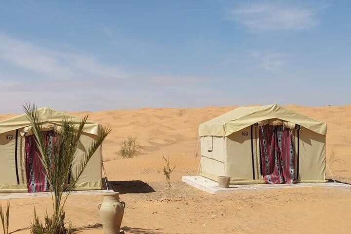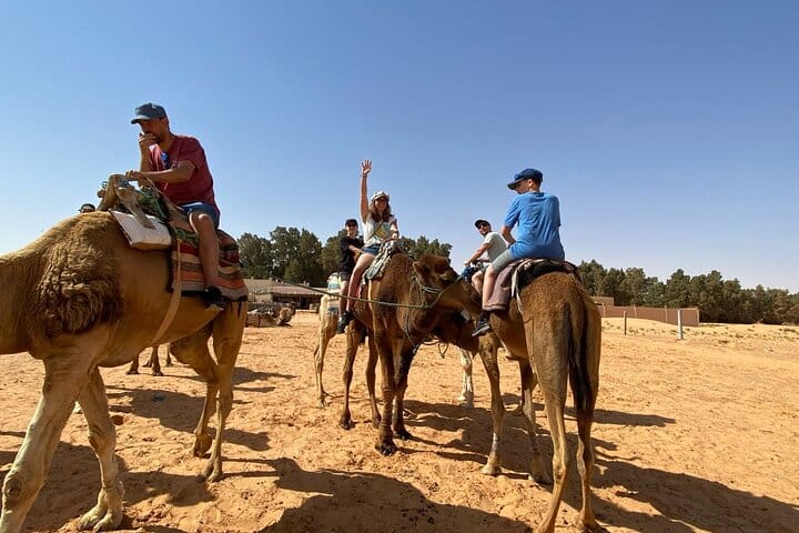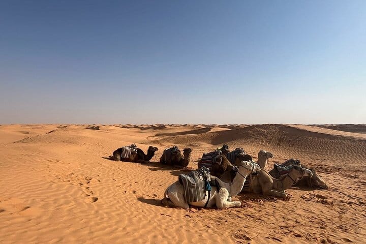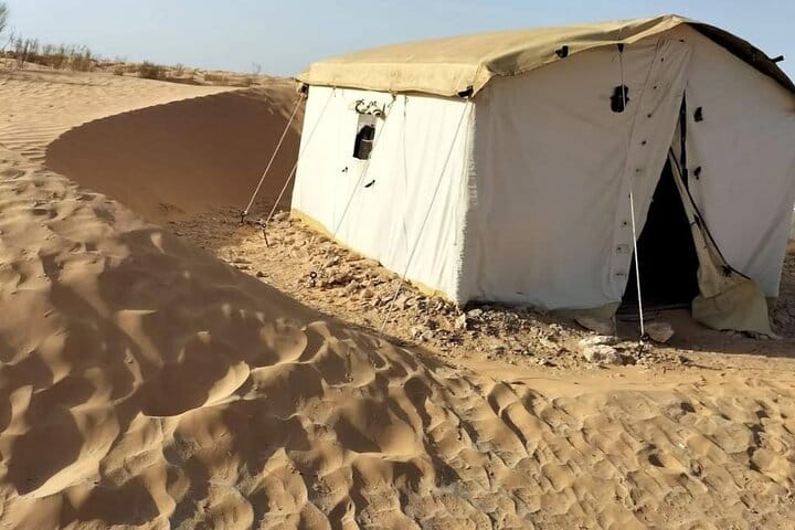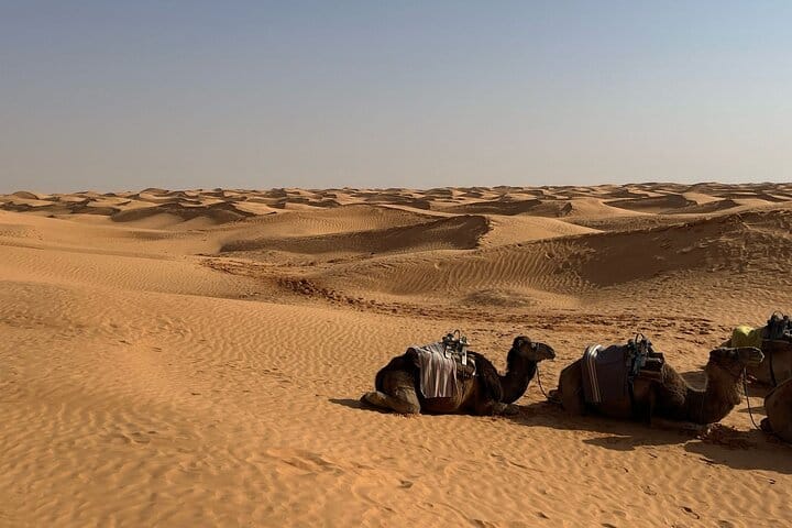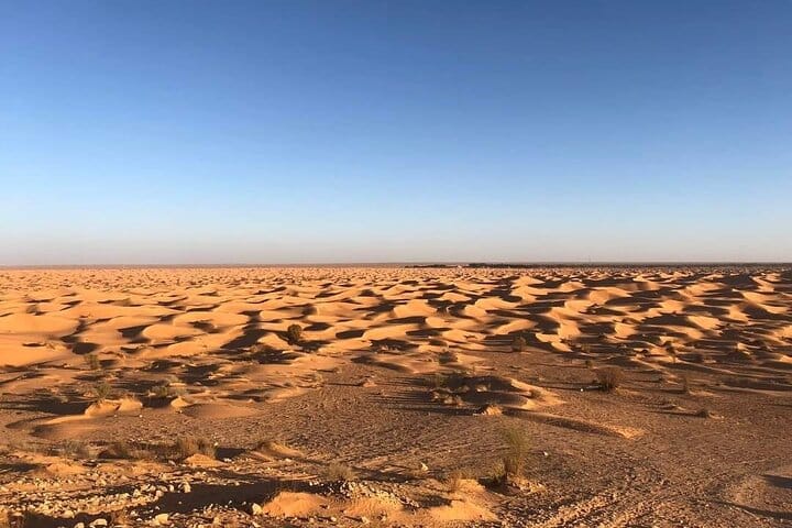 Visit the Tataouine region and take a stroll to the souk in the city center. Continue towards Chenini, a Berber village in ruins. Explore the Berber villages and visit the ksours, Continue towards Ksar Ghilane a ruin of the Roman fort reputed to be the southernmost of the Tunisian oases and you will have free time to bathe in the hot thermal springs of Ksar Ghilane. Settle into the Zmela camp and enjoy the silence of the Tunisian desert and live the adventure and experience of sleeping in a tent in the desert far from all light pollution under the beautiful stars. This experience allows you to discover the daily life of the local inhabitants. .